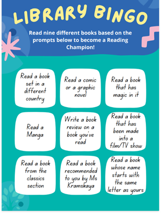 Beyond our collection, the library hosts a range of reading-focused events and initiatives across the year, including a library bingo in which students are challenged to read a wide variety of material. We also have a team of Reading Champions who support the day-to-day running of the library and help to promote a love of reading throughout the school.